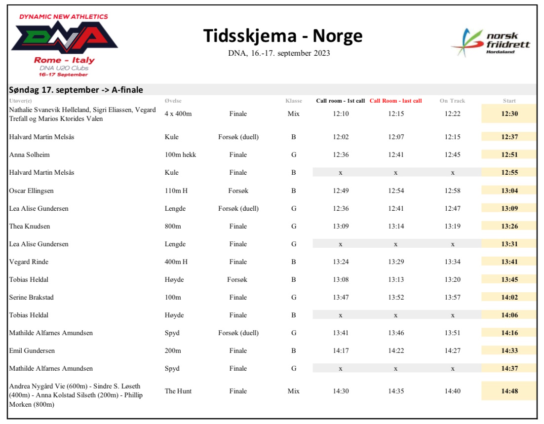 Hordaland Friidrettskrets er tatt ut til å representere Norge under DNA U20 Clubs mesterskapet som avholdes helgen 16. september til 17. september i Roma. Her finner du mer informasjon om mesterskapet.