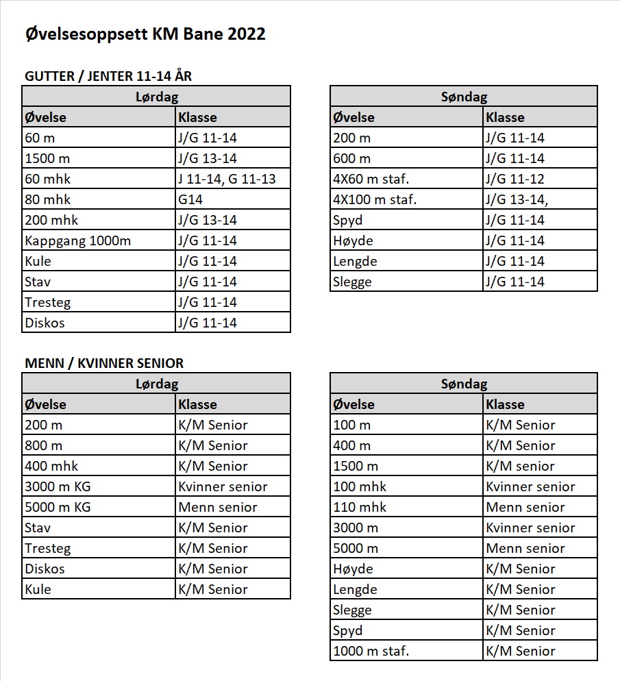 Det er gledelig å kunne annonsere at KM på bane for 11-14 år og senior er tilbake! KM er et viktig arrangement så vi håper på god oppslutning og at utøvere og klubber benytter denne anledningen til å plukke poeng til lags-seriene.
