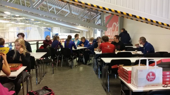 Etter trening var det samling med pizza og kos - før veien ble lagt hjemover. Neste samling blir i Bærum idrettspark i desember.