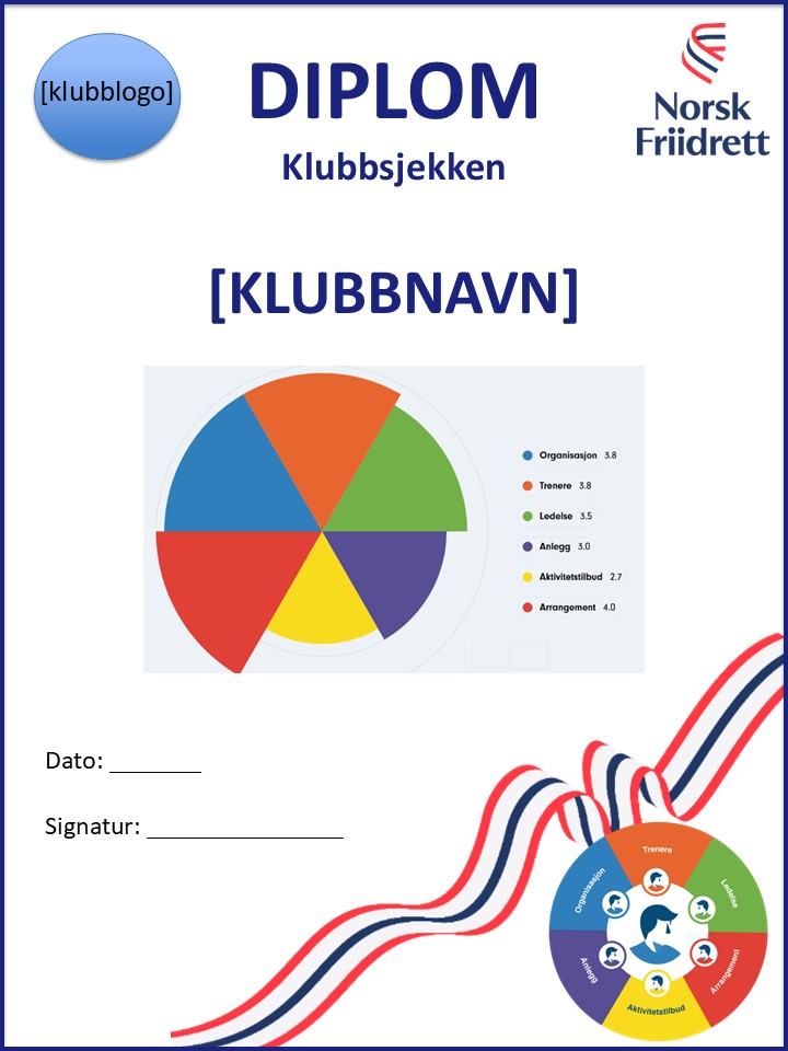 Når dere har tatt Klubbsjekken, får dere også mulighet til å laste ned et diplom som kan brukes i årsrapporten, på nettsiden eller i klubbhuset.